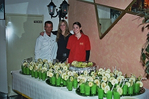 unsere Gäste mit tropischen Cocktails und einem "Kokos-Ananas-Bananen-Snack"