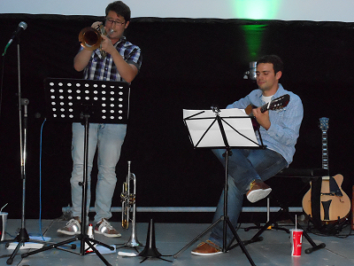 Musiker auf der Open Air Kino-Bühne