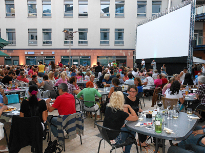 Innenhof der Hetzel-Galerie "Filme unter freiem Himmel".