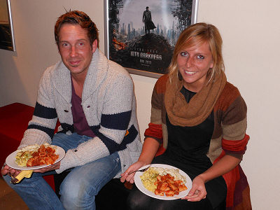 den Roten Teppich (in diesen Fall war der Teppich schwarz), ins Kino geleitet