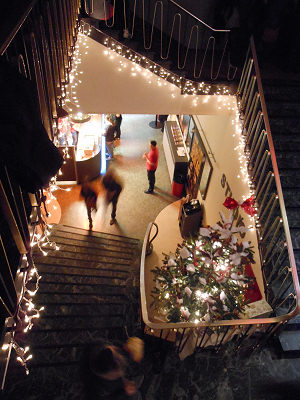 unsere Eintrittskarten in der Bar, im obersten Geschoss des Hotels.