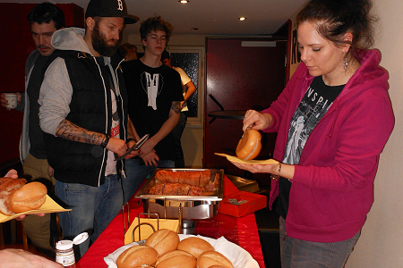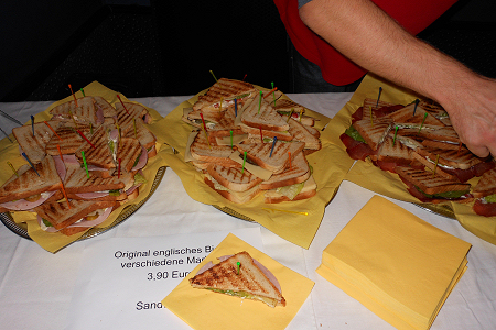 Gäste mit zünftigen echt bayerischen Leberkäs-Semmeln und urigem Münchener