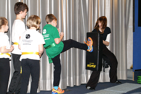 über Kampfkunst- bzw. Selbstverteidigungsarten und zeigte Kindern, wie