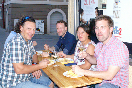 Gäste mit einer echten Bowle. Die Fotos zeigen Roxy-Theaterleiter Michael