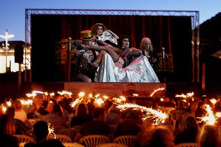Rojo, eine der Hauptdarstellerinnen aus dem Film auf der Bühne begrüßen.