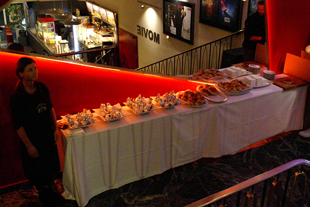 Spezialitätenteller und französischen Wein im Kinofoyer.